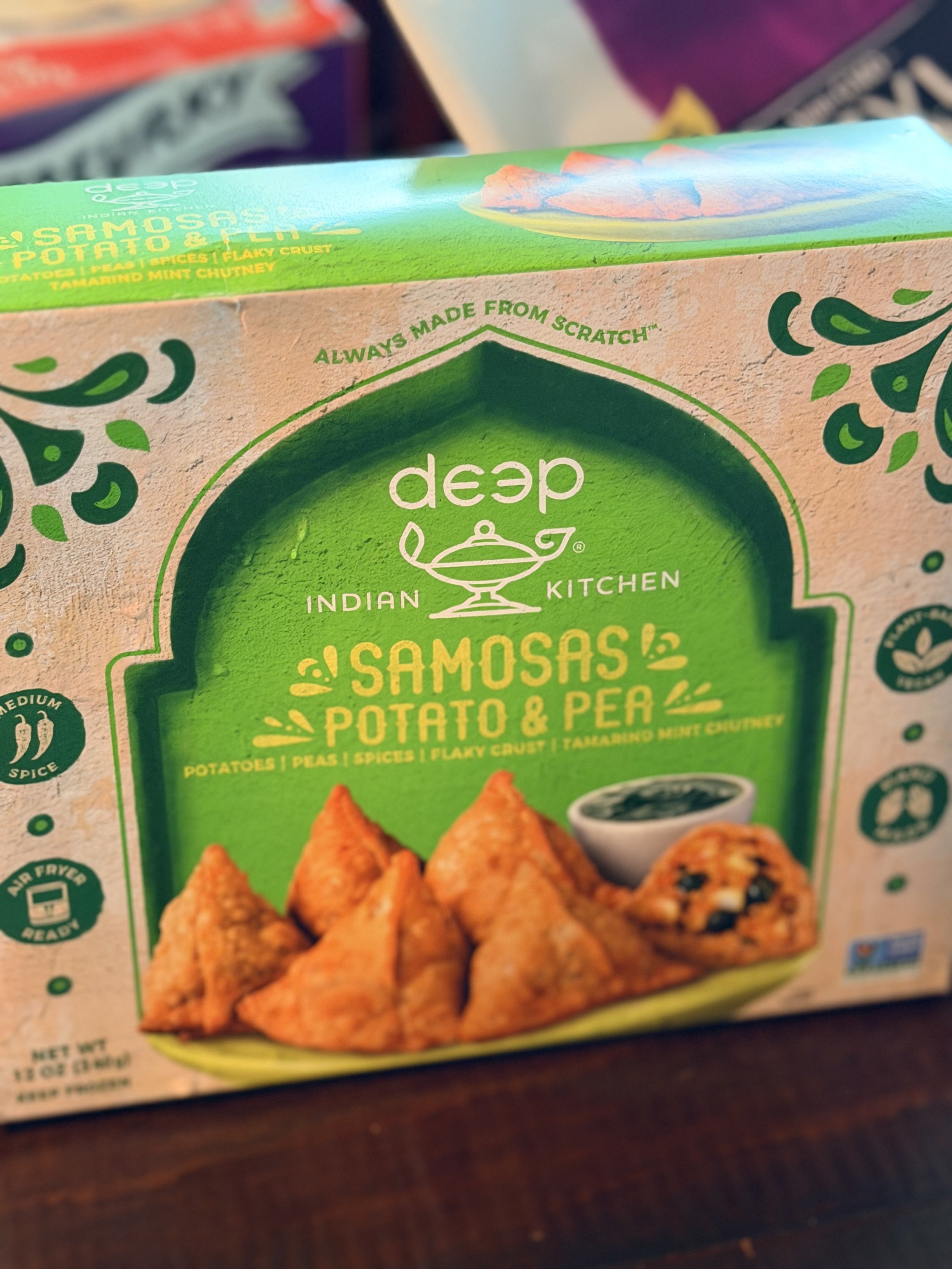 I love Indian Kitchen’s Potato & Pea Samosas ($8.59) with a flaky crust and tamarind mint chutney.