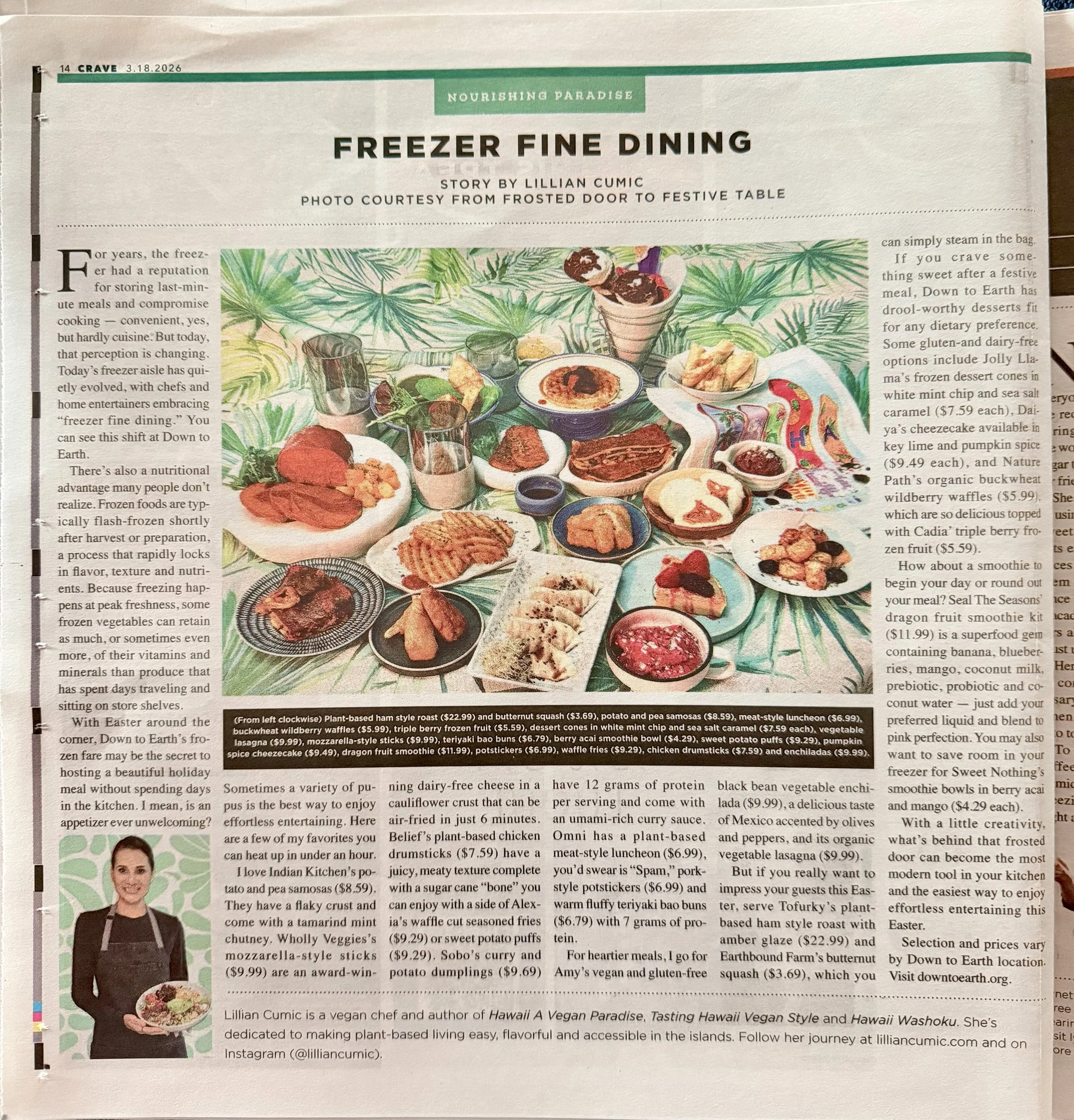 “FREEZER FINE DINING” story and photo by Lillian Cumic published in the Star-Advertiser March 18, 2026.