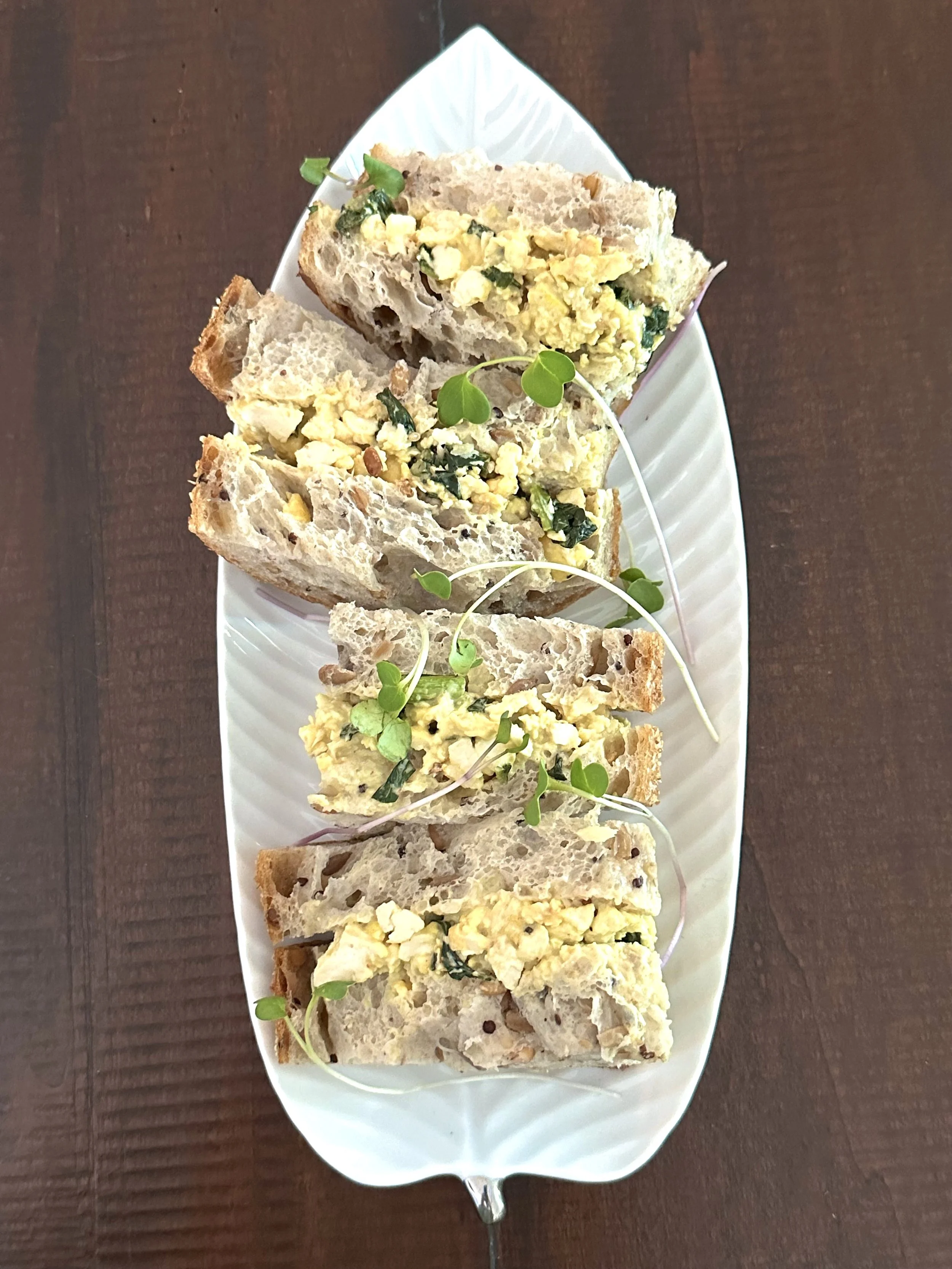 I explained how tofu is a high-protein, cholesterol-free ingredient that can be used to create a variety of egg-style dishes with the help of kala namak, also known as black salt, which gives tofu its signature egg-like flavor. I presented four finished dishes: scrambled tofu eggs, a plant-based egg sandwich, a Japanese-inspired tamagomaki egg roll with nori, and egg sushi topped with vegan caviar. Each dish highlighted how one humble ingredient can become many possibilities when approached with curiosity and intention.