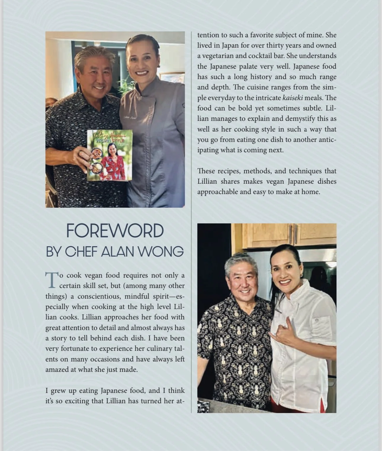 Another culinary icon, Alan Wong, graciously wrote in his foreword for my book, “Lillian’s attention to detail and respect for Japanese tradition come through in every recipe. She’s doing something really meaningful here—not just for vegans, but for anyone who loves food.”