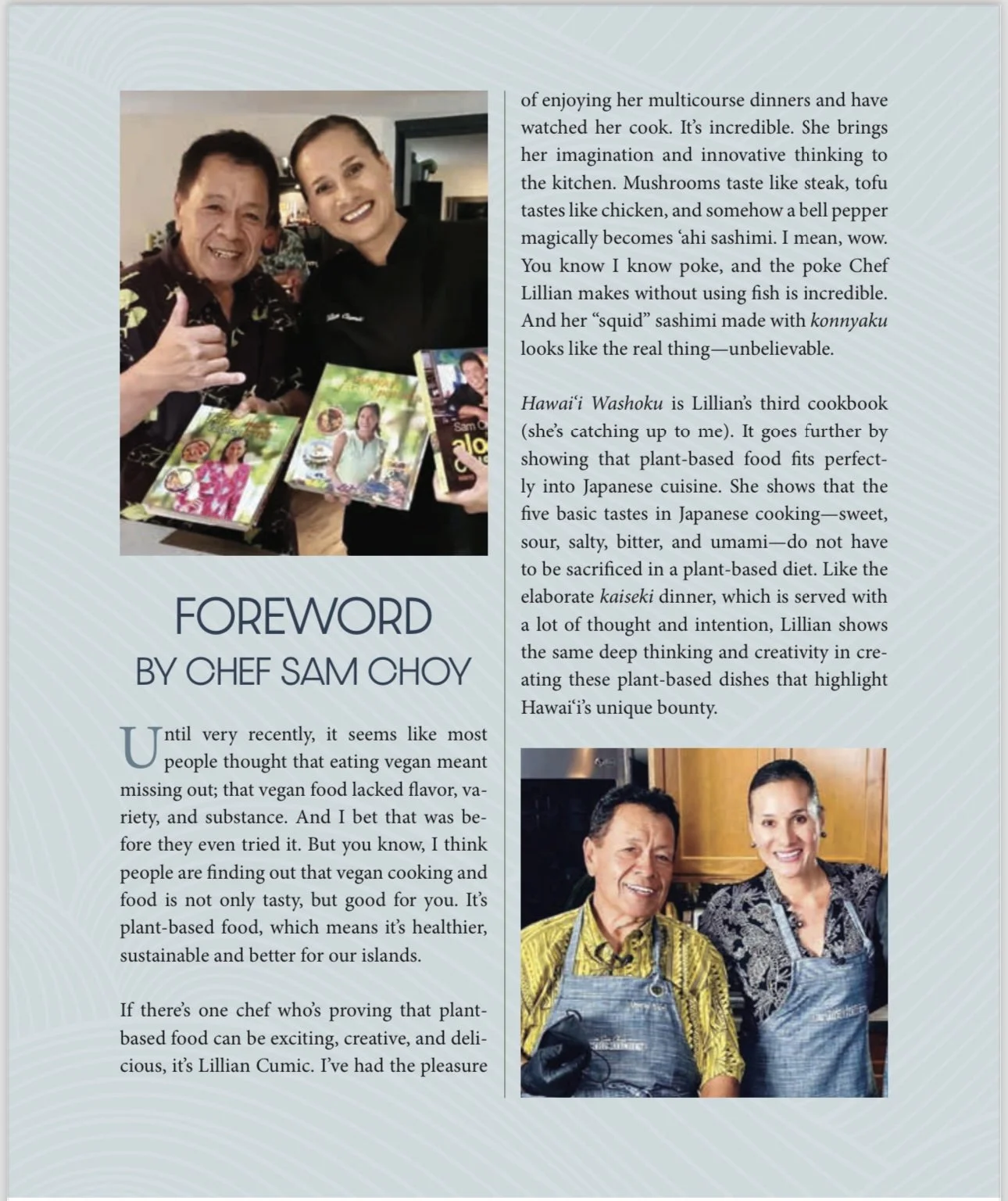 Celebrity chef Sam Choy wrote in the foreword of my Hawai’i Washoku, "Lillian brings a new energy and understanding to our local food scene. Her flavors are bold, her passion is real—and she’s making plant-based food something people get excited about." That kind of encouragement from a legend in the Hawaii culinary world means the world to me.