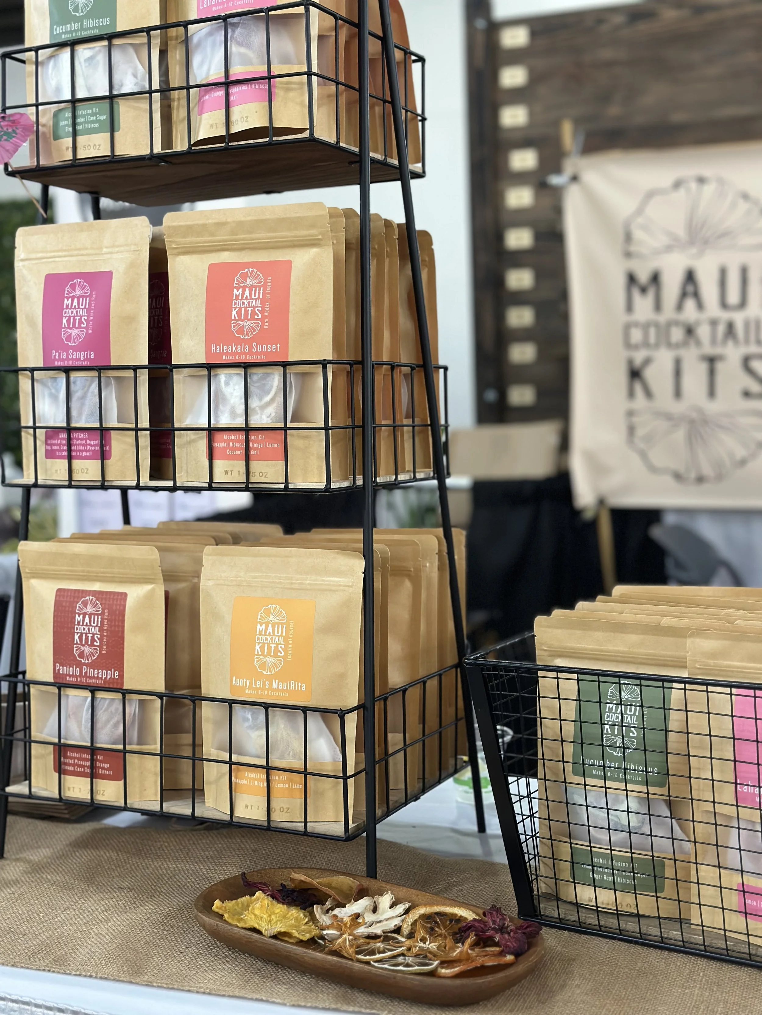 One standout was DIY Maui Cocktail Kits ($18ea) by owner Katy Tsark. Each kit is curated with ripe, locally picked Maui fruit, botanicals, and herbs for a flavorful infusion. Try the Pa‘ia Sangria, a tropical blend with dehydrated starfruit, dragon fruit, mango, lemon, orange, and liliko‘i, all packed into an easy-to-use infusion bag.